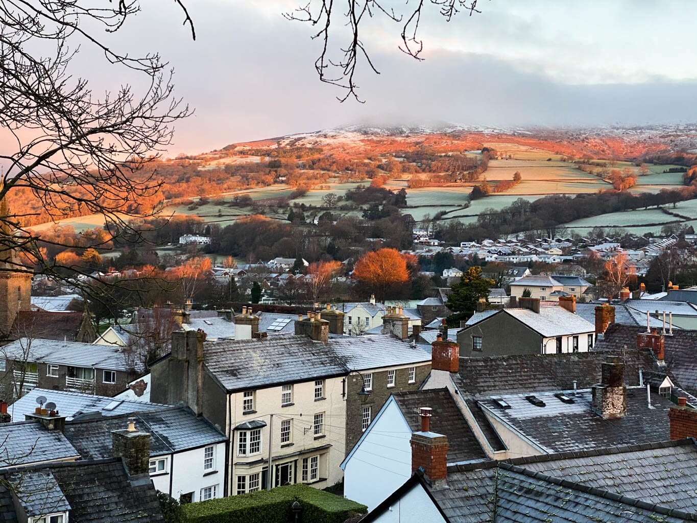 Looking down to Crickhowell from the Canal. The river Usk in flood looking down from Bluebell woods. Looking south east toward Sugar Loaf mountain in the distance. Looking down over the town from Bellfountain Road. Castle Park in the town centre. The Dragons breath over the town. The Dragons breath over the River Usk. The Dragons breath looking towards Gilwern. View down to the river Usk from Bluebell woods. Looking out from the Bluebell woods over the Glanusk Estate. Sugerloaf mountain in the evening. From Castle Park looking towards Table Mountain. Sugerloaf Mountain in all its glory. Another splendid view of Sugerloaf Mountain. The countryside at the top of Bellfountain Road. A winter morning on Bellfountain Road. A winter morning on Bellfountain Road.